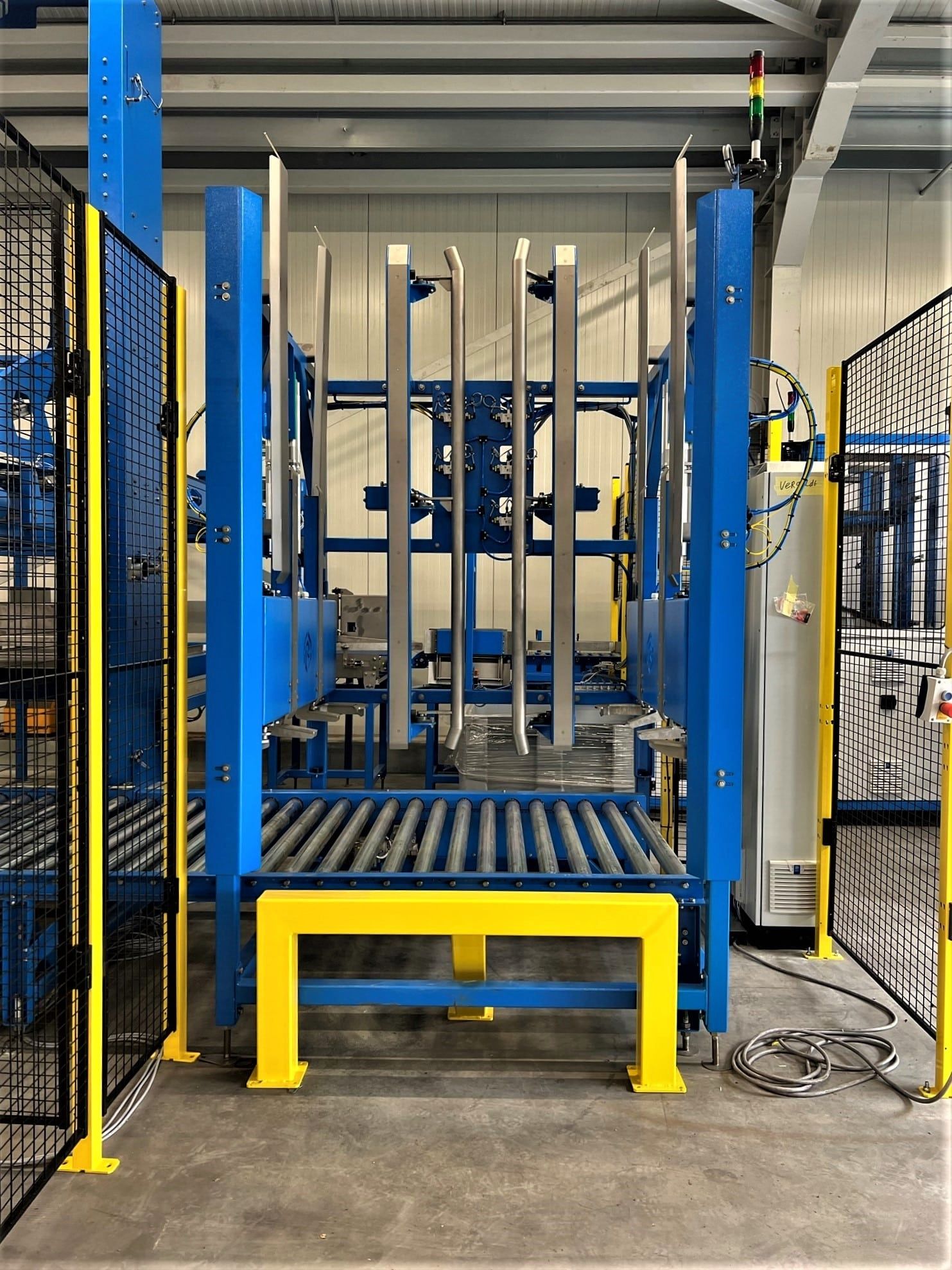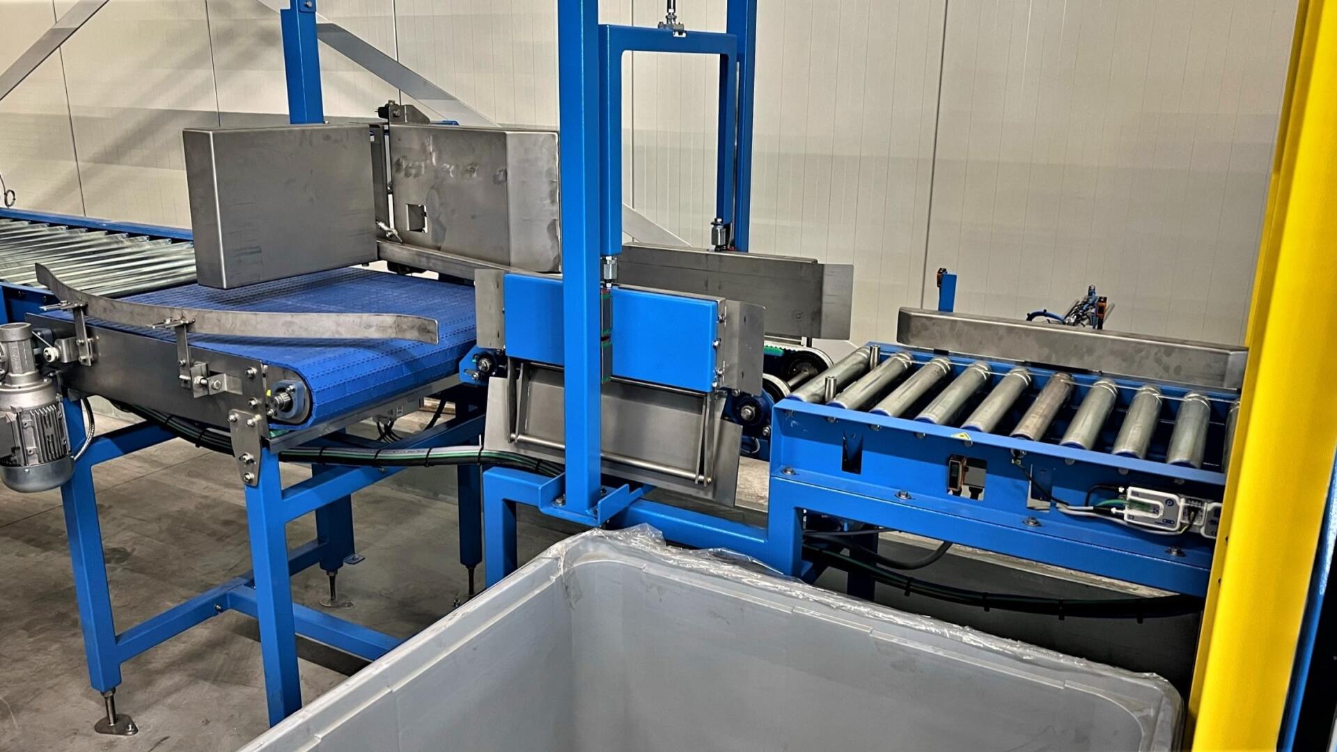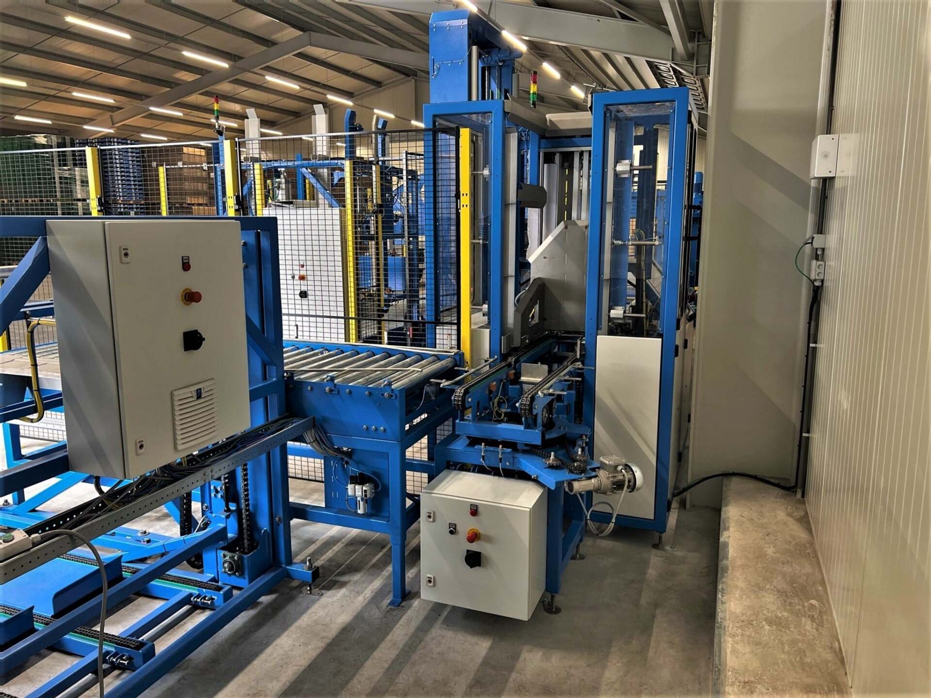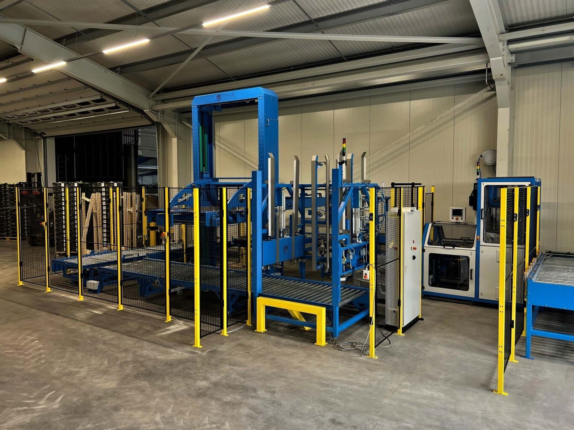 Met de innovatieve krattenuitvouwlijn van Reintjes Systems kan Vergeldt Vegetables uiteenlopende klapkratten volautomatisch uitvouwen en intralogistiek verwerken. De oplossing is modulair opgezet en bestaat in zijn totaliteit uit een universele depalletiseerder, krattendraaimodule, krattenontstapelaar en -uitvouwer mét een automatisch uitwerpmodule, krattenstapelaar, rotatiemodule, universele palletiseerder, universele palletontstapelaar, pallet draaimodule en diverse pallet rollenbanen. Raadpleeg de ‘projectpagina’ of ‘onze oplossingen’ webpagina van Reintjes Systems om een indruk te krijgen van de functie en voordelen van iedere module.